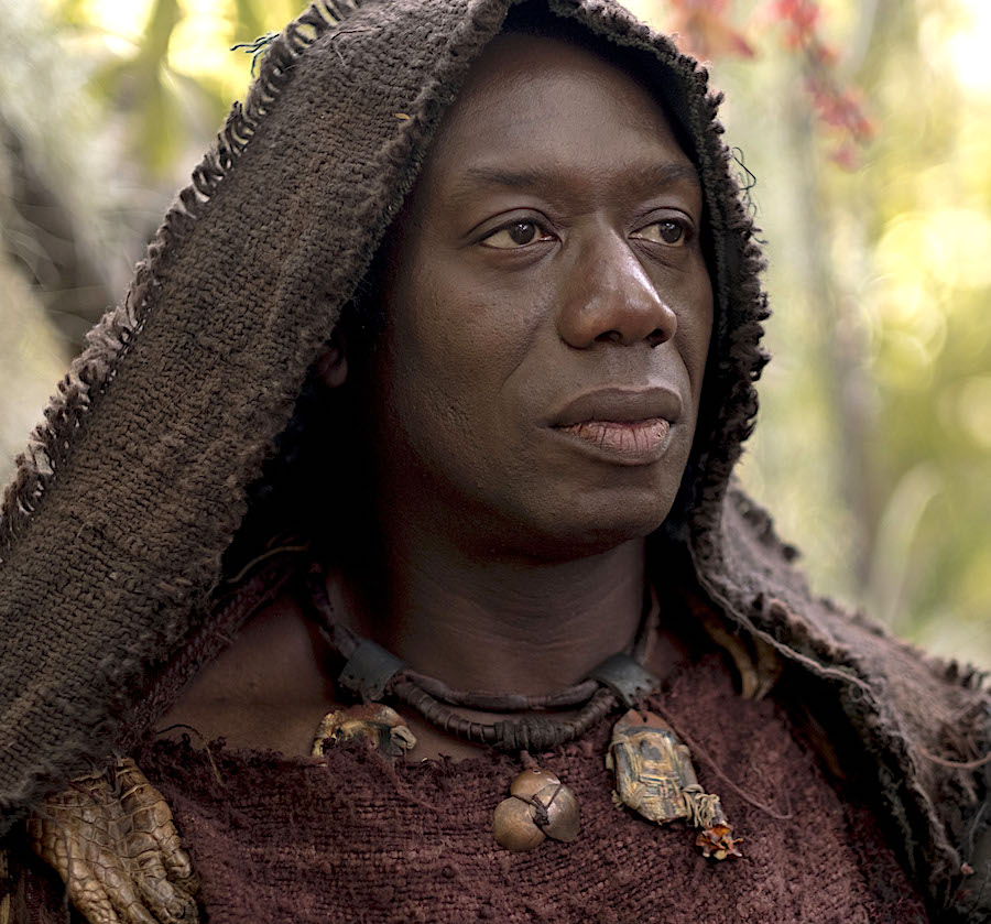 Though we don’t know it at first, the baby boy grows up to be Paris (Louis Hunter), whom we next encounter as a kind of classical cowboy, rounding up cattle on horseback amid rugged and mountainous landscapes (Troy was shot near Cape Town). Pursuing a missing calf through a wood, he happens upon Hermes and a trio of goddesses. Zeus, the big enchilada of Olympus and grumpily played by Hakeem Kae-Kazim (pictured below), had decided that Paris must choose which of the goddesses is the loveliest (he had to pick up a flaming apple from a fire to give to the winner, and miraculously did so without feeling any pain). Frankly they looked more like C-list celebrities trying to gate-crash an Oscar night party than goddesses, but he chose Aphrodite, because she promised to give him the world’s most beautiful woman in return.