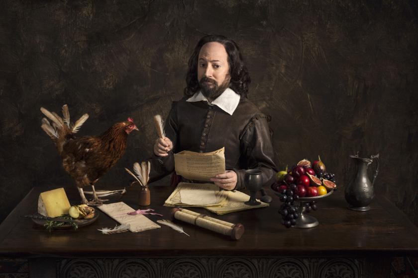 David Mitchell is William Shakespeare, here played as a man for whom one word will never do when he can say ten, and always on the verge of a moan – whether it's about the poor 16th-century transport system between London and Stratford-upon-Avon, or the fact that, as a Midlander, he's seen as an oik by the Oxbridge elite in London who rule the country. There are lots of lovely little historical conjunctions like that. “In England it's not what you know, it's what dead farmyard animal you rogered at university,” says Will.
