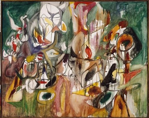 His later paintings, those painted at the height of his creativity in the 1940s, are something else altogether. With their nascent, slippery forms they often allude, enigmatically, to memories of his Armenian past, and, more specifically, to memories of his mother. “Her stories and the embroidery on her apron get confused in my mind,” he once wrote. “All my life her stories and her embroidery keep unravelling pictures in my mind.”