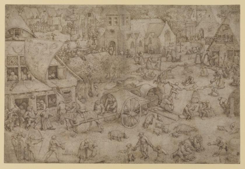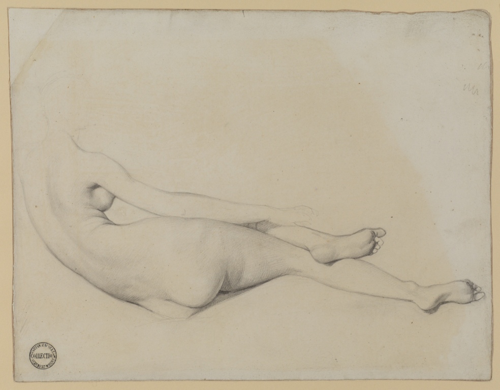 As obvious as it would seem, it’s still surprising how much some of these drawings resemble their makers’ paintings. The spikey Van Gogh is a case in point, as is Manet’s La Toilette (1860) with its frontally lit hard-edged realism, and the light and precise lines of Ingres’s study for La Grande Odalisque (pictured below, 1814). Pieter Bruegel the Elder’s expansive Kermesse at Hoboken (1559) is unmistakable and a joy to behold in its compacted intricacy, depicting scores of peasants in the drunken throes of festival.