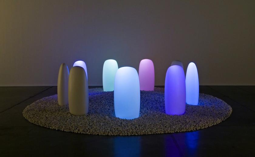 Other works include Primal Memory, an arrangement of white stones placed on the floor, though the stones are, in fact, made of translucent glass. The stones arranged in the inner circle emit white light. As an object of spiritual contemplation I’m afraid I find it to be just as naff as any plastic Sacred Heart, though since this is contemporary art and not a religious artefact the only thing that might elevate it as a receptacle of belief is a fervent belief in kitsch contemporary art.