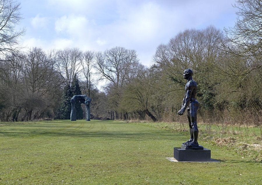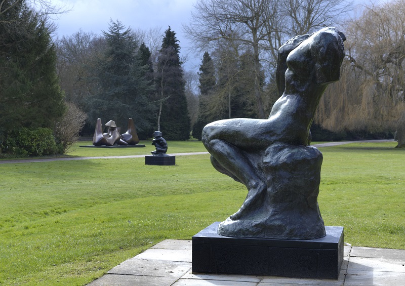 Rodin’s The Burghers of Calais have decamped from their usual perch next to the House of Lords to cosy up to the work of Henry Moore. They can be found at Moore’s home and studio at Perry Green in Hertfordshire, in a tellingly succinct anthology of the towering giants of modern European sculpture. At first glance Rodin’s extraordinary evocations of energy and sensuality, literally embodied in the models he studied so intensively, and Moore’s semi-abstracted helmet heads and upright motives, don’t have much in common. But the compare-and-contrast thrust of this wide-ranging compilation, also taking in drawings, maquettes, miniatures and art that the artists themselves collected, throws unexpected light on both.