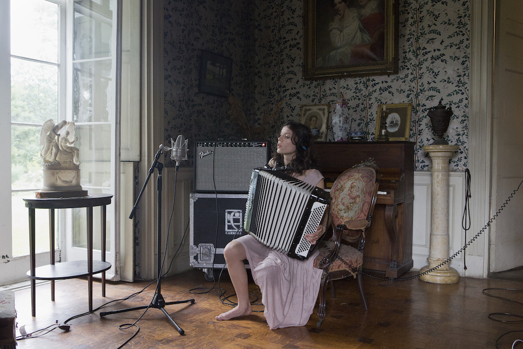 The Visitors, 2012 (pictured below) was shot in Rokeby Farm, a crumbling mansion in upstate New York crammed with antiques and fine furniture. A group of musician friends from Reykjavik took up residence, one to a room, and in a nine-screen installation we see them simultaneously playing their instruments and singing the refrain “Once again I fall into my feminine ways”. The title of the piece comes from the last album made by ABBA before their split, and the hour-long performance of this melancholy chorus seems to reprise the gradual breakdown of a relationship.