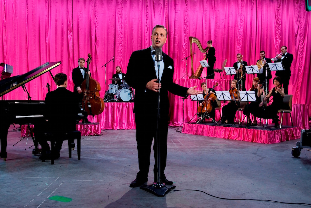 In the video God, 2007 (pictured above) he assumes the persona of a tuxedo-wearing crooner with slicked-back hair and a cheesy grin. Red satin curtains line the room; they match the copious drapes framing the set on which an orchestra strikes up a schmaltzy ballad and Kjartansson sings Sorrow conquers happiness. He repeats this solemn mantra over and over for half an hour until, eventually, embracing sorrow begins to feel like a welcome relief from the false cheeriness that travels across the Atlantic with other American imports.