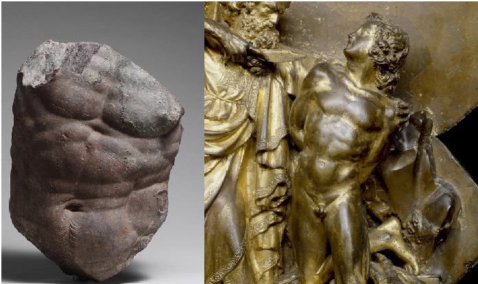 And what an overpowering spectacle it is. Occupying the first-floor gallery of the Palazzo Strozzi, it establishes in 10 rooms that what the city’s millions of casual visitors may think of as primarily a painterly movement – Botticelli’s Venus is the face of Florence on all the apps and aprons – was first carved in stone and cast in metal. Take the star exhibits of the first room. The accepted year zero of the Renaissance is 1401, when the competition to design the bronze doors of the Baptistery yielded two works which have been exhibited side by side more or less ever since. You can see perfectly serviceable copies of The Sacrifice of Isaac by Brunelleschi and Ghiberti in the V&A. What you can’t see are the hunks of classical marble from which the two young goldsmiths explicitly drew their inspiration. But here they both are: a Boy with Thorn from the first century BC whose bent-over pose is precisely echoed by one of Brunelleschi’s shepherds (see gallery), while the rippling trunk of Ghiberti’s Isaac quotes the twisted marble Torso of a Centaur (both pictured above) from the first century AD. The connection could not be clearer.
