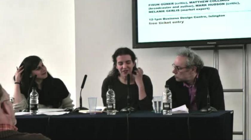 Matthew Collings was snowed in in Norfolk, so was sadly unable to join us, but the weather didn’t defeat The Arts Desk/London Art Fair debate. The Art Newspaper’s market expert Melanie Girles and TAD critic Mark Hudson rose to the challenge, while I did my best to steer the lively conversation.