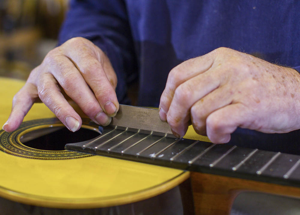 "It's a huge job," says Cohen. "I had to take all the frets out, remove the fingerboard, just skim a bit off the fingerboard and then re-fret it. I did this about eight times. There was one time when we adjusted the bridge saddle by 1,000th of an inch. I was getting a bit tired of this to be honest, so I thought to save myself time I'll just make it a 2,000th or one-and-a-half thousandth. Bream must have played the guitar for about 10 minutes and he said, 'You know Brian, I think you've gone one and a half here, this isn't the 1,000th I asked for.' And of course he was right." And this without even measuring it with the digital micrometer that the demanding Bream carried around with him.